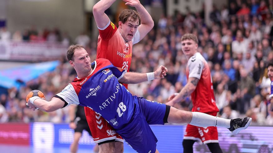 Kapitän Tobias Heinzelmann traf gegen Essen neun Mal. Sein Treffer zum 40:25 war historisch. Er übertraf damit die alte HBW-Bestmarke in einem Pflichtspiel von bisher 39 Toren.